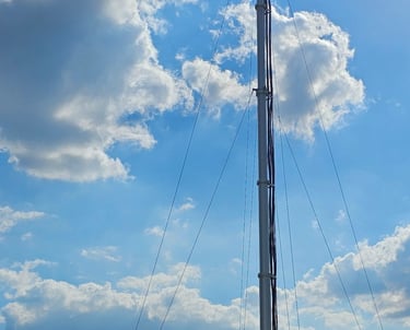 Sécurité: Nacelle de sécurité, section du mat pneumatique vérrouillable par tronçon, ballast et haubans